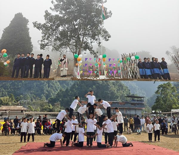 Thereafter, the girl students of Vivekananda Kendra Vidyalaya, Liromob, once again rendered the National Anthem, formally marking the beginning of the Republic Day programme. This was followed by a beautiful and impressive pyramid performance presented by the students, which was highly appreciated by the audience.