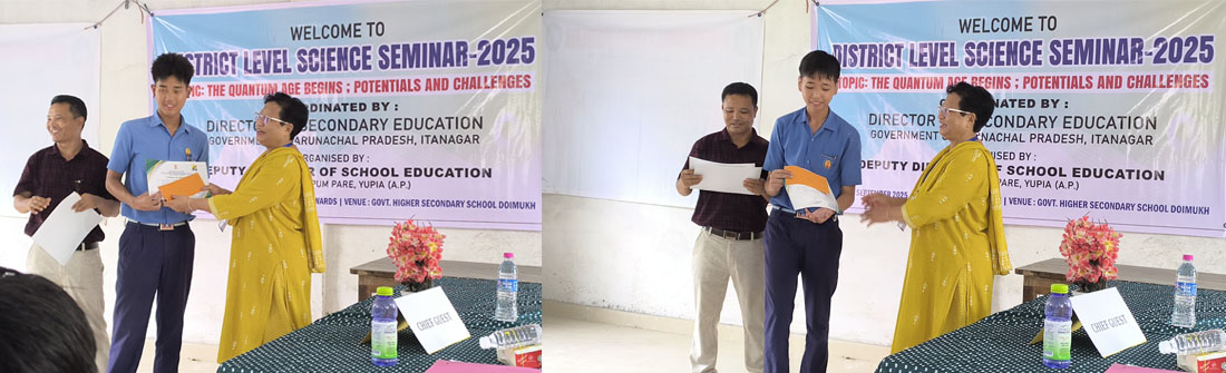The District Level Science Seminar was organized at Government Higher Secondary School (GHSS), Doimukh, on 11th September 2025. The event witnessed enthusiastic participation from four reputed schools of the region, showcasing the scientific aptitude and presentation skills of young minds.