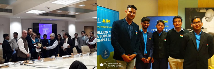 On 14th Nov, 2018 the team was felicitated by Dr. Rajiv Kumar VC, Niti Aayog, Dr. Ramanan, Director AIM, Niti Aayog and Dr. Yuri Afanasev from United Nation