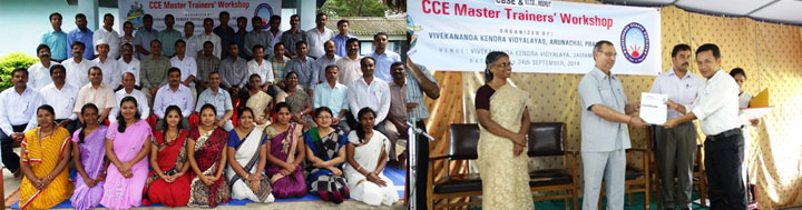 A 3 days ‘CCE – Master Trainers’ Workshop was held at VKV Jairampur from 22nd September to 24th September, 2014. 42 selected teachers attended the workshop from 29 Middle, Secondary and Higher Secondary VKVs, out of which 7 are Principals. Sri Satya Prakash Verma from ‘Vidya Institute of Training And Development’, Meerut, an empanelled agency of CBSE, was the Resource Person of the workshop. The workshop, dealt with three aspects of Continuous and Comprehensive Evaluation (CCE): Concept of CCE, Life Skills and Values & Attitude. Held on the eve of ‘Mananeeya Eknathji Janma Sati Parva’, which is scheduled to be started from November, 2014 onwards, the workshop will definitely help to consolidate and strengthen our academic performance. These selected teachers after training in this workshop, are expected to conduct workshops in their own schools and neighborhood schools to give impetus to the evaluation Programme.
