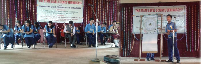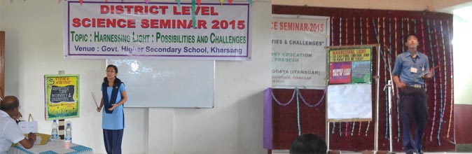 11 students from VKVs who were the winners in their respective Districts participated in the State level Science Seminar held on 28th August 2015. Dobang Pertin from VKV Oyan stood third in the state level.The seminar was hosted by Govt Hr Sec School, Arunodaya - Itanagar under the auspices of Directorate of Secondary Education, GoAP.