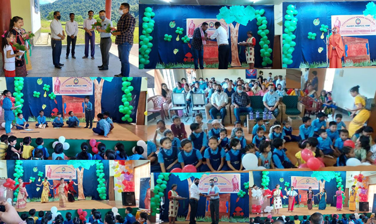 VKV (NEEPCO) KIMI has Celebrated Universal Brotherhood Day on 11th September 2021 in the school auditorium in a befitted manner. The programme sharply started at 10:30 a.m. with three omkaras followed by Eakya mantra. Thereafter, welcome song was sung by Km. Puja Newar (class-VII) and her group. Next, welcome address followed by felicitation of Chief guest(Anupom Buragohain), Guest of Honour(Mamer Ete) and Special Guests (Tasso Millo and Dorjee Jebisow) was given by the Principal Samiran Barua VKV (NEEPCO)KIMI. Afterwards, Vilas Palsokar sir has highlighted the importance of the day by saying that Swamiji has changed the vision of western country towards India by attending world parliament of religions in Chicago in 1893. Next, presentation of Chicago Address was displayed by Himutjal Chetia (Class-VII). After that, a beautiful traditional dance was performed by Km.Mimi Chongruju (Class-VI) and her group. Next, a Speech was given by Guest of Honour, Sri Mamer Ete (Deputy manager, Securities, KaHEP NEEPCO KIMI) where he focused on the importance and values of brotherhood. Thereafter, a short drama on the life history of Swami Vivekananda was performed by Karan Chetry, Daniel Flago and other students on the theme ' Stand firmly with truth'. Next, patriotic song was sung by Km. Madhura Palsoka(Class- VI) and her group. Afterwards, Chief Guest, Anupom Buragohain (Deputy Manager(HR) KaHEP NEEPCO,KIMI) delivered a speech by saying that, to bring changes in society, one must change himself/herself. After the speech, a beautiful Bihu dance was performed by Km. Florine Chongruju (Class-VII) and her party. Next, vote of thanks was given by Sri Manish Kumar, Teacher, VKV, NEEPCO, KIMI.