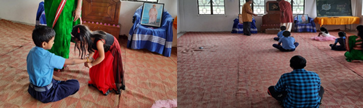 All the teaching, non teaching staff and staff children tied to Rakhi each other. Rakhi were tied to the panel of Swami Vivekananda and Ma. Eknathji.