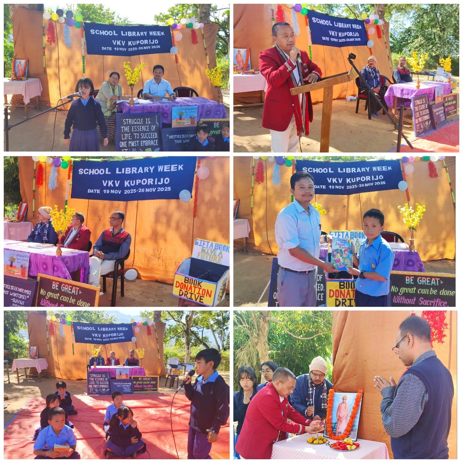 The program proceeded with a Vivek Vani presented by Km. Niania Duchok of Class VII, followed by a felicitation of the Chief Guest. Km. Tutu Ekke of Class VII then shared the significance of the day, explaining the importance of Library Week in fostering strong reading habits among students.