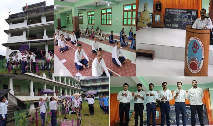 VKV Vivek Vihar celebrated India’s 75th Independence Day in the school play ground. Principal Sri. Balaji Namdeo Waghmare hoisted the flag at 7.00 a.m. All the teaching staff, non-teaching staff and students inside the campus participated in the programme by paying salute to the Indian tri-colour and singing the national anthem together with pride and love for India. Principal, VKV Vivek Vihar spoke on the significance of the day-highlighting the sacrifices made by great sons and patriots of India; due to whose sacrifice we are independent today. Also, on this auspicious occasion of 75 years of Independence, the resolution was taken by all present there that each one of them will try to associate 75 persons with Kendra, who would devote an hour per day in the service of the nation; for at least one year of joining. A small programme was organized inside the prayer hall. In the programme, • Sri. A. K. Pandey sir, quoted some patriotic slogans which gave the feeling of pride and of oneness that every ones heart beats for India and awakened the wave of patriotism that was lying dormant. • A patriotic song was presented by the teaching faculty. • And another melodious and heart touching song was presented by Kr. Harshvardhan Pandey, (student) in reminiscence of the Indian soldiers who work 24x7 defending the borders, far away from their families, bearing both extreme heat and cold, reminding us how much we owe to them. • And the programme was concluded. Tea and snacks along with toffee was provided as refreshment.